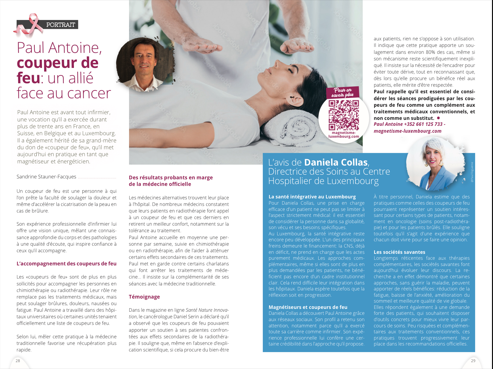 Nous avons rencontré Paul-Antoine, magnétiseur, énergéticien et «coupeur de feu» à Steinfort. Il a la particularité d’avoir mené une carrière en qualité d’infirmier durant 30 ans en France, en Suisse, en Belgique et au Luxembourg. Cela lui donne une autre vision dans sa pratique de magnétiseur, par la connaissance de l’anatomie, du corps humain et des pathologies. Et la profession d’infirmier met naturellement en confiance.